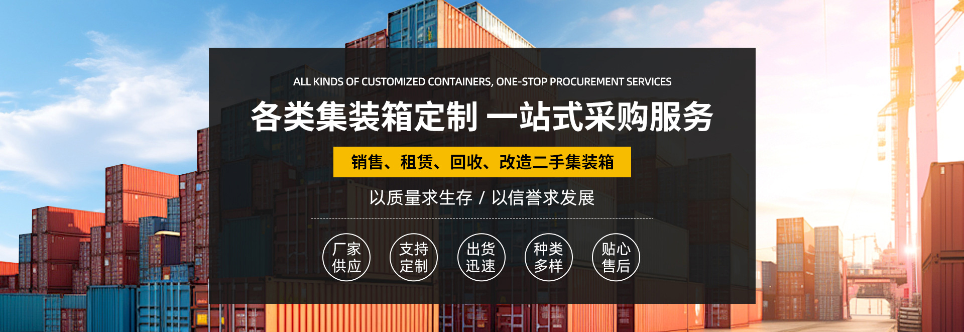 一家標(biāo)準(zhǔn)集裝箱、非標(biāo)準(zhǔn)標(biāo)箱、特種集裝箱及集裝箱活動(dòng)房、集裝箱野營(yíng)房、集裝箱模塊化組合房的專業(yè)企業(yè)。